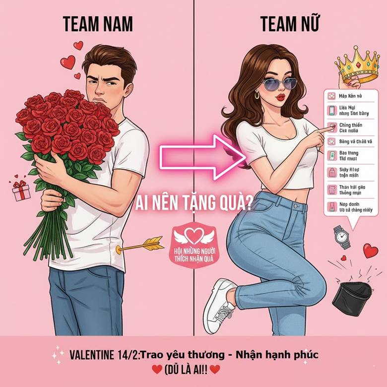 Ai nên tặng quà ngày Valentine 14/2 – Nam hay Nữ? Nếu bạn đang đứng giữa những cuộc tranh luận không hồi kết trên mạng xã hội hay đơn giản là đang băn khoăn không biết mình có nên là người chủ động xuống tiền cho một món quà xa xỉ, thì bạn không đơn độc.