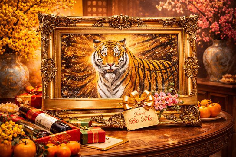Năm 2026 là năm tuổi của gia chủ tuổi Ngọ, vốn gặp nhiều xung sát. Việc biếu bố mẹ chồng một bức Tranh Hổ Dát Vàng chính là cách bạn thể hiện sự quan tâm sâu sắc nhất.