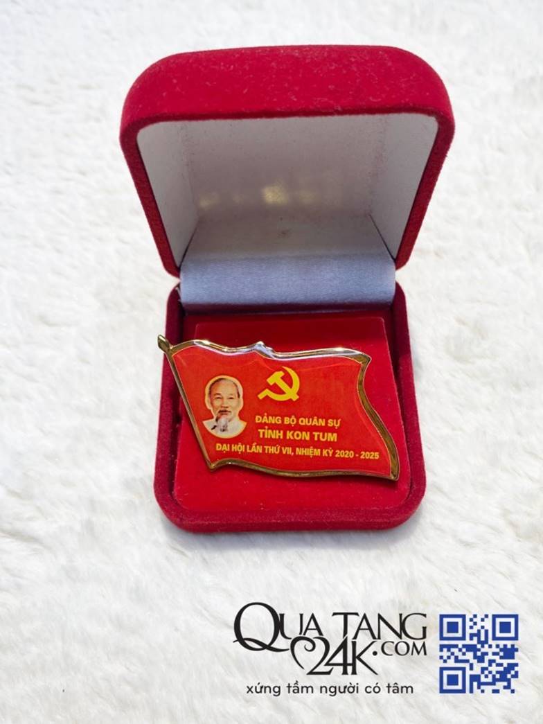Huy Hiệu Đại Hội Đảng Bộ Các Cấp được tạo hình như một lá cờ đang tung bay, biểu tượng của sự kiên định, tiến bước và đoàn kết. Chất liệu kim loại mạ vàng, kết hợp với lớp men đỏ nổi bật sang trọng và bền bỉ.Trung tâm là hình búa liềm vàng – biểu tượng của Đảng Cộng sản Việt Nam, thể hiện lý tưởng cách mạng và sức mạnh của khối công – nông.