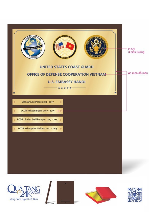 Bên cạnh đó là mẫu bảng vinh danh truyền thống và hiện đại (như mẫu Bảng Vinh Danh Đại Sứ Quán Hoa Kỳ tại Hà Nội đã thực hiện). Những vật phẩm này là phương tiện mạnh mẽ để truyền tải giá trị thương hiệu, công nhận cống hiến, và khích lệ tinh thần đồng đội.