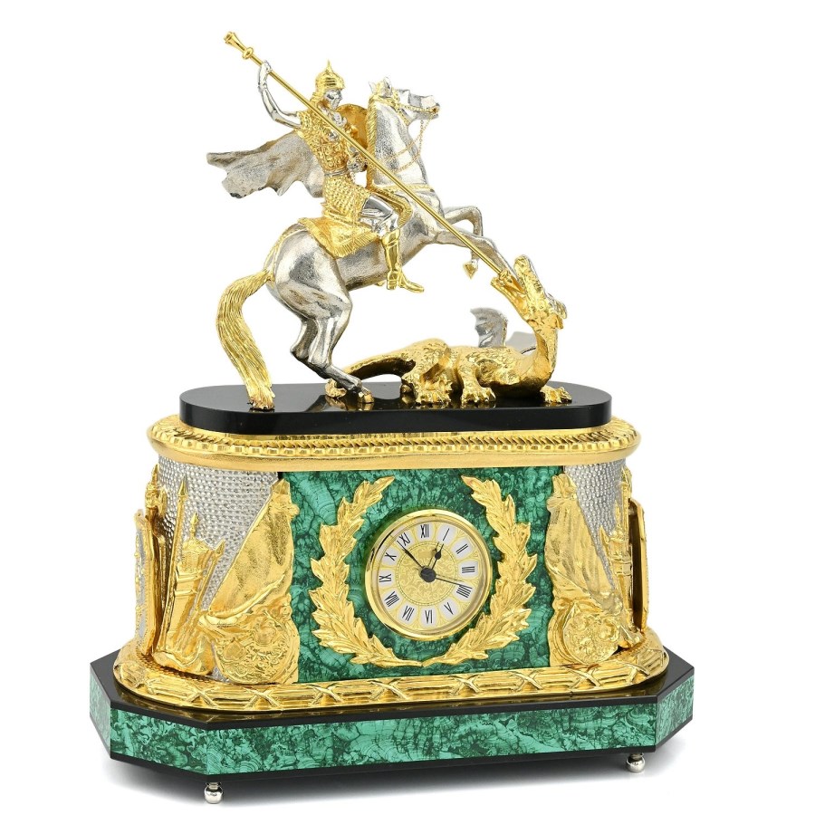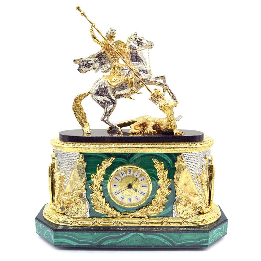 Chiếc đồng hồ trang trí Tượng Thánh George Diệt Rồng kết hợp giữa biểu tượng lịch sử và kỹ thuật chế tác đỉnh cao. Không chỉ gây ấn tượng bởi thiết kế oai phong của vị hiệp sĩ cưỡi ngựa chiến đấu với rồng. Mẫu đồng hồ này còn chinh phục giới sưu tầm bởi chất liệu quý hiếm và độ hoàn thiện tinh xảo.