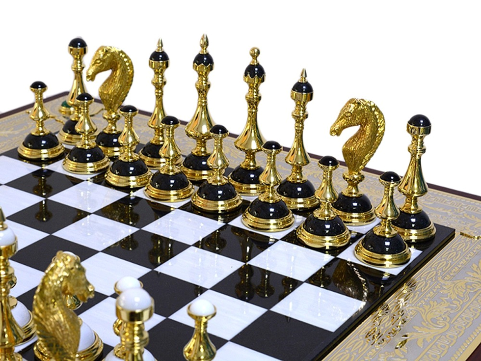 Quân cờ được chế tác hoàn hảo một bên là trắng nạm vàng óng ánh, bên kia là đen huyền bí. Sự đối lập này không chỉ tạo nên vẻ đẹp thị giác mà còn tượng trưng cho hai thế lực trí tuệ đối đầu.