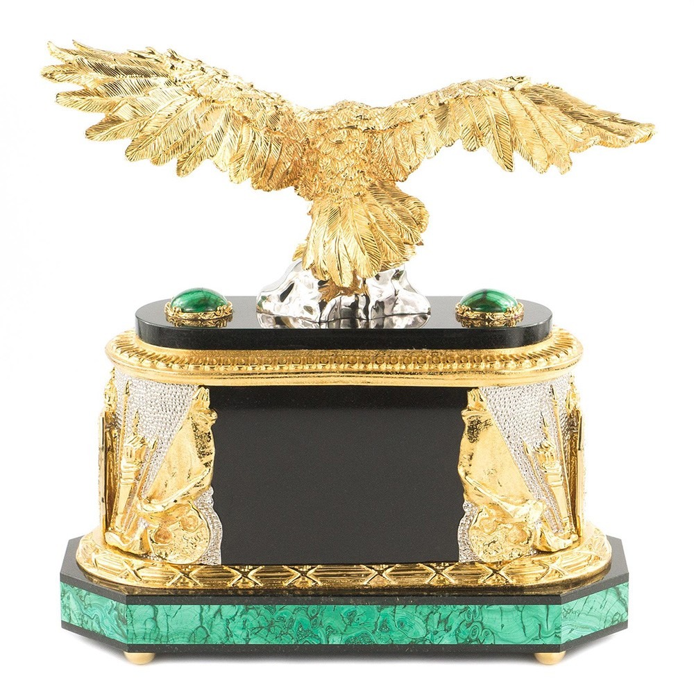 Trên đỉnh nắp như từ trên một ngọn núi đá, một con đại bàng dang rộng đôi cánh bay lên. Tất cả các chi tiết kim loại đều được mạ vàng và niken nguyên chất. Lớp mạ vàng bảo vệ các chi tiết khỏi các tác động bên ngoài, quá trình oxy hóa và ăn mòn.