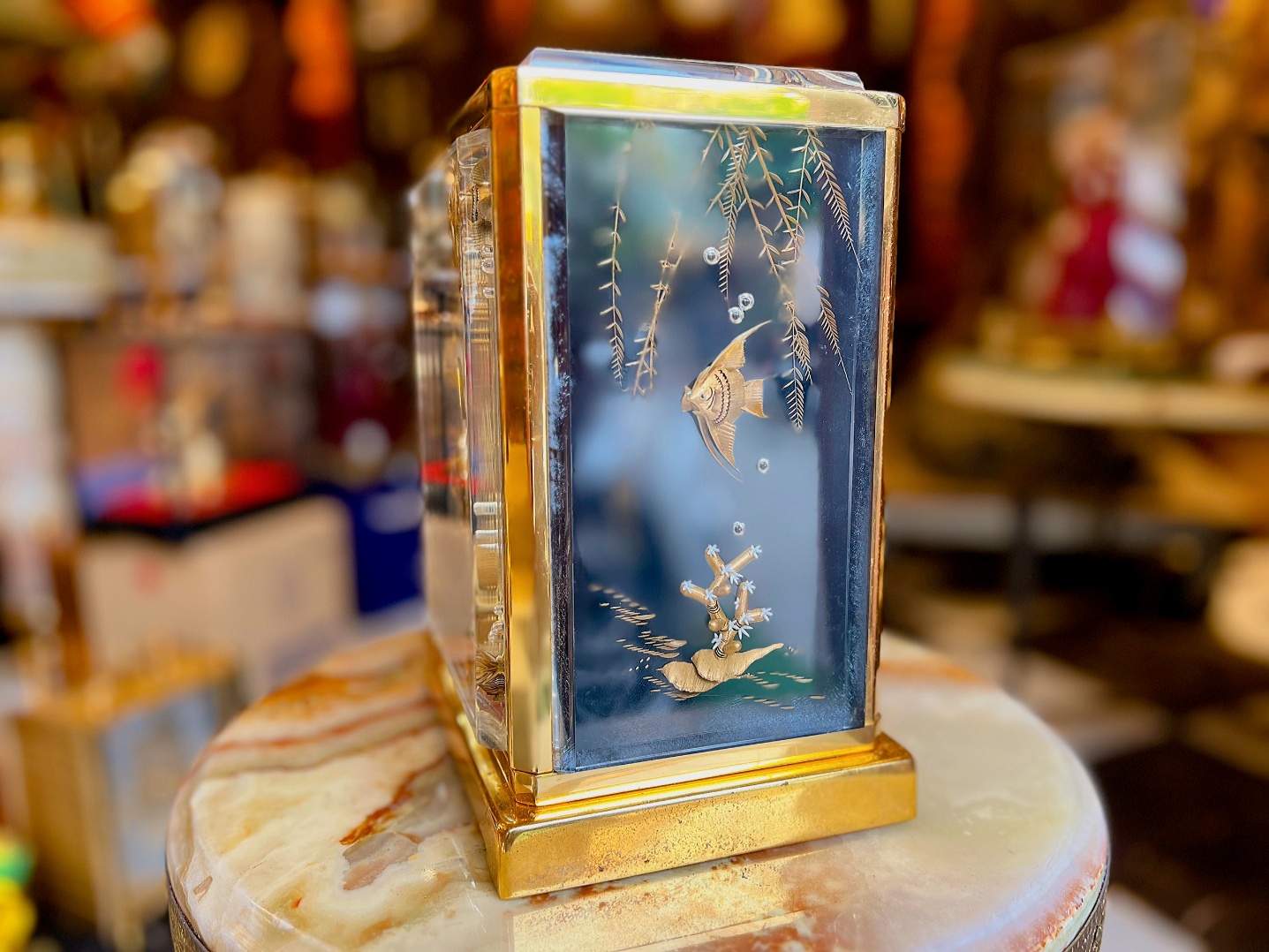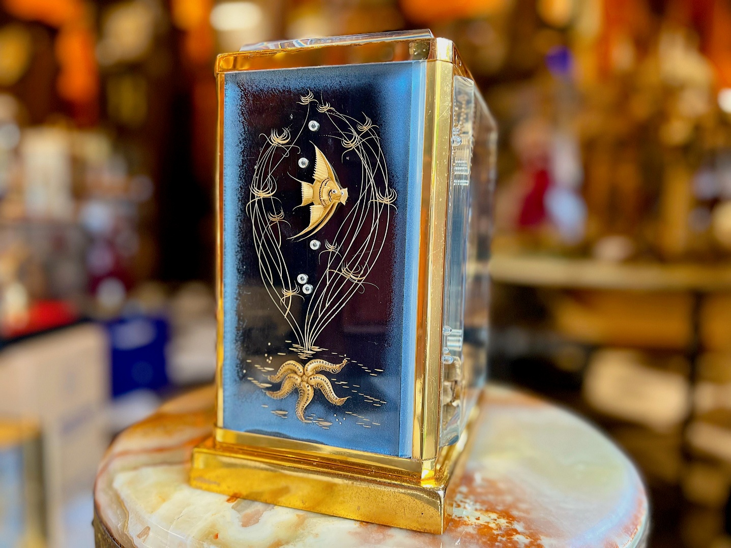 Đồng hồ để bàn Jaeger-LeCoultre Atmos là một bức tranh nghệ thuật sống động. Một biểu tượng của sự sang trọng cổ điển và kỹ thuật chế tác đồng hồ gần như hoàn hảo. Siêu phẩm được biết đến trong giới sưu tầm đồng hồ cổ với danh xưng Atmos Marina Cá Vàng - Huyền thoại thời gian dưới lòng đại dương.