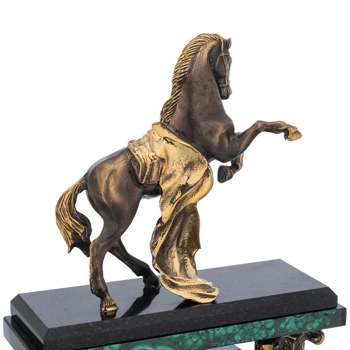 Mặt đồng hồ tròn, sử dụng số La Mã cổ điển. Phía trên là tượng ngựa chồm bằng đồng hoặc hợp kim mạ vàng, mang phong cách điêu khắc cổ điển. Đế có hoa văn baroque và chân đế uốn lượn tinh xảo. Đây không chỉ là một thiết bị đo thời gian thông thường, mà còn là một tác phẩm nghệ thuật mang giá trị thẩm mỹ cao.