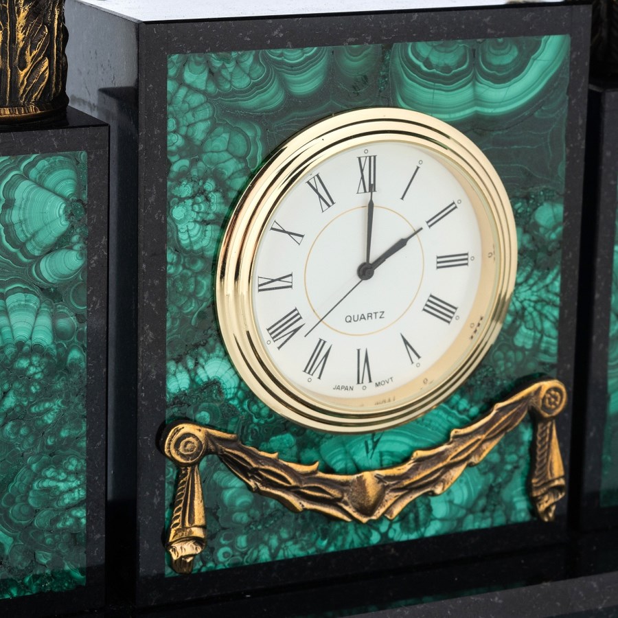 Trong khi phần mặt đồng hồ được thiết kế hiện đại nhưng vẫn giữ được nét cổ kính, trang nghiêm. Các chi tiết chạm khắc đều được làm từ kim loại cao cấp, phản ánh chất liệu quý giá như đồng thau, vàng hoặc bạc, đem lại vẻ đẹp sang trọng và bền bỉ theo thời gian.