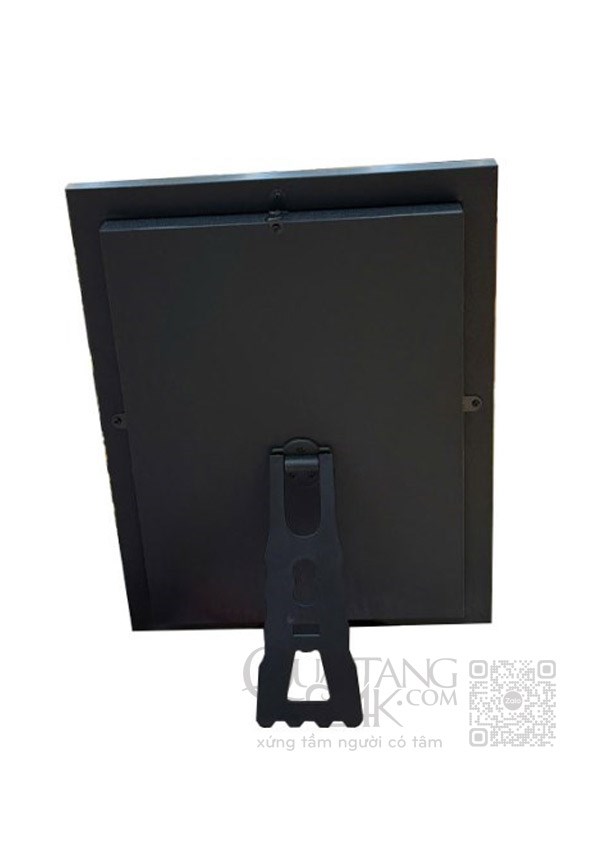 Kích thước: cao 30, ngang 39 cm, cạnh 4.5 cm Chất liệu kim loại mạ vàng cn, trên nền nhung đỏ (xanh).