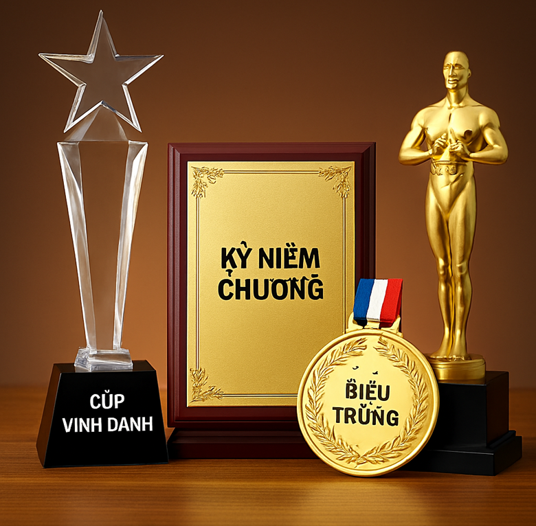 Cúp vinh danh: Thích hợp cho các giải thưởng "Tổ đội sản xuất giỏi" hay "Cá nhân tiêu biểu năm". Cầm chiếc cúp trên tay trong buổi tiệc tất niên, công nhân viên sẽ cảm nhận được sự chuyên nghiệp và quy mô của công ty.